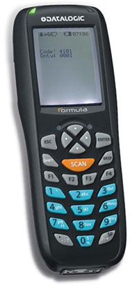 The Datalogic Formula is a very small laser scanner measuring just 6 x 2.2 inches and weighing a minuscule 7.3 ounces. It's designed for a variety of scanning applications such as inventory, shelf replenishment, order entry, asset tracking, price management, etc. The device is based on a non-specified 8-bit processor, runs a proprietary Datalogic operating system, and has a small display that can show 16 lines by 16 characters.