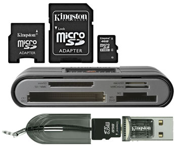 With memory card standards proliferating and the various electronics in our lifes requiring different cards of all sizes, it's sometimes difficult to keep everything compatible. Fortunately, Kingston doesn't only make memory, they also make all sorts of readers and adapters that make transferring and saving files between notebooks, handhelds, cameras and smartphones easy and convenient.