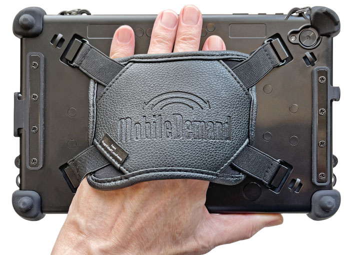 How can that be? Drops from TEN feet? Don't smartphone and tablet screens routinely shatter when they slip out of one's hand? They do, and the difference between that and surviving ten feet drops is an expertly designed case. And those not terribly elegant rubber bumpers make a HUGE difference in keeping the display protected. MobileDemand's special screen protector also helps. This is not just the usual sheet of plastic but scratch-proof glass with a special oleophobic (fingerprint-resistant) coating. It uses an adhesive to keep it in place.
