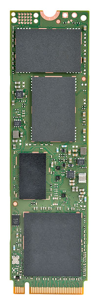 So what is the Intel SSD 600p Series? It's a small memory module (see location to the left and closeup to the right). It comes in the M.2 22 x 80 mm form factor and uses a PCIe NVMe 3.0 x4 interface.